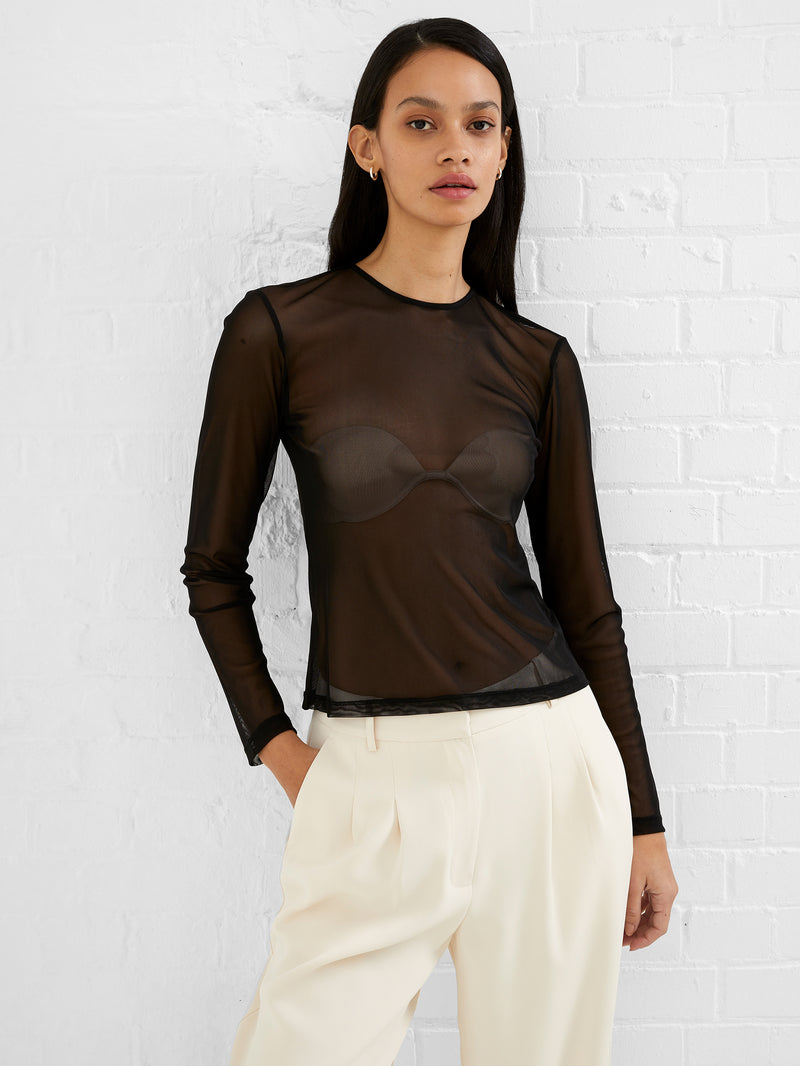 Toni Mesh Long Sleeve Top Black French Connection Uk